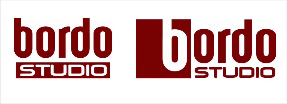 В итоге были приняты два начертания логотипа, базовый и альтернативный, включающие уникальный дизайн шрифта бренда bordo и все то же широкое начертание слова STUDIO (см. историю развития бренда Тандем-Люкс). Во втором альтернативном варианте первая буква бренда была инверсирована и вписана в бордовый квадрат.