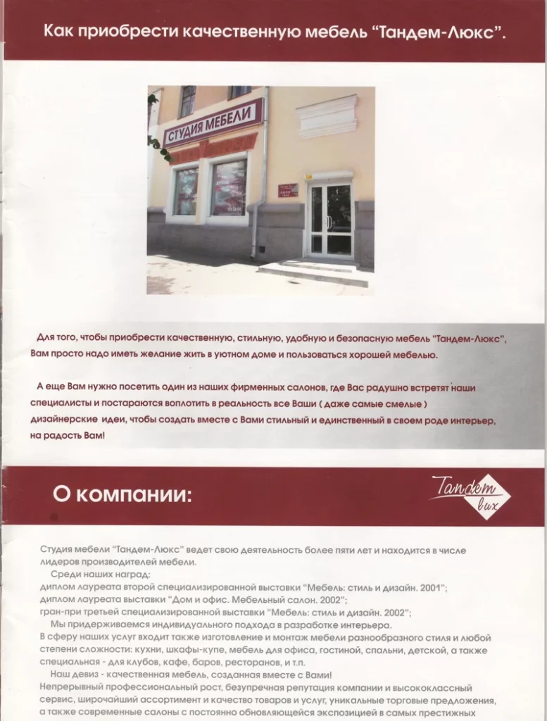 Рекламный каталог мебельной студии «ТАНДЕМ-ЛЮКС» (2006)