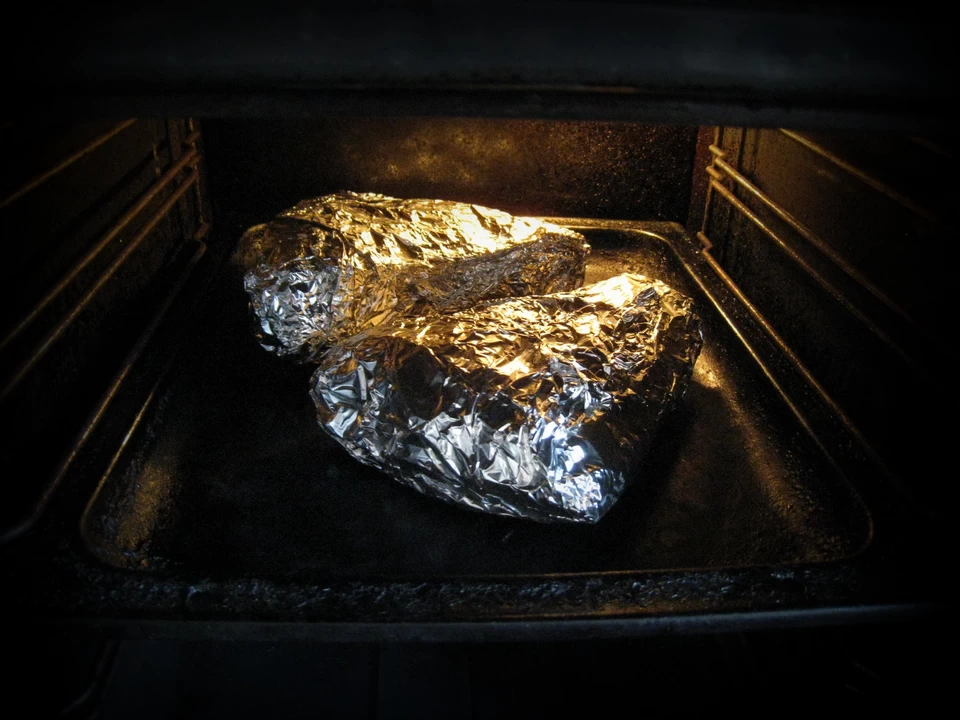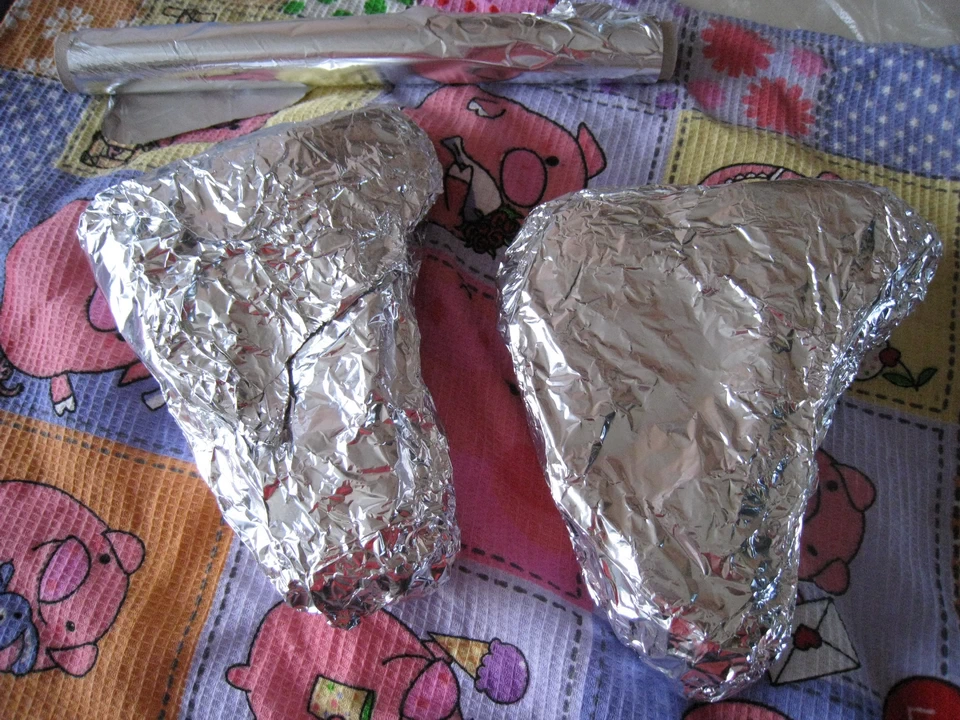 - Чтобы сок не вытек (принципиально для говядины), фольга должна быть герметична, лучше в 2-3 слоя;