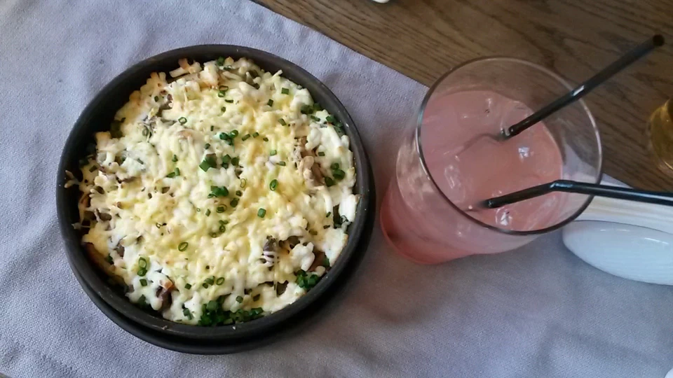 В итоге стол заполнили жаренная свинина (оджахури) с картофелем и специями, каре ягненка с овощами на мангале, рулеты из баклажан с творогом (бадриджани), осетинский пирог, хачапури по-аджарски, гонио. Про последнее блюдо стоит сказать отдельно: оно похоже на огромный жульен с тонкими пластинками говядины, картофеля, овощей и шампиньонов, запеченных под сырной шубой с майонезом. Все это подается в керамической 20-сантиметровой сковородке: пахучим, шкворчащим, жирным… вкусным!