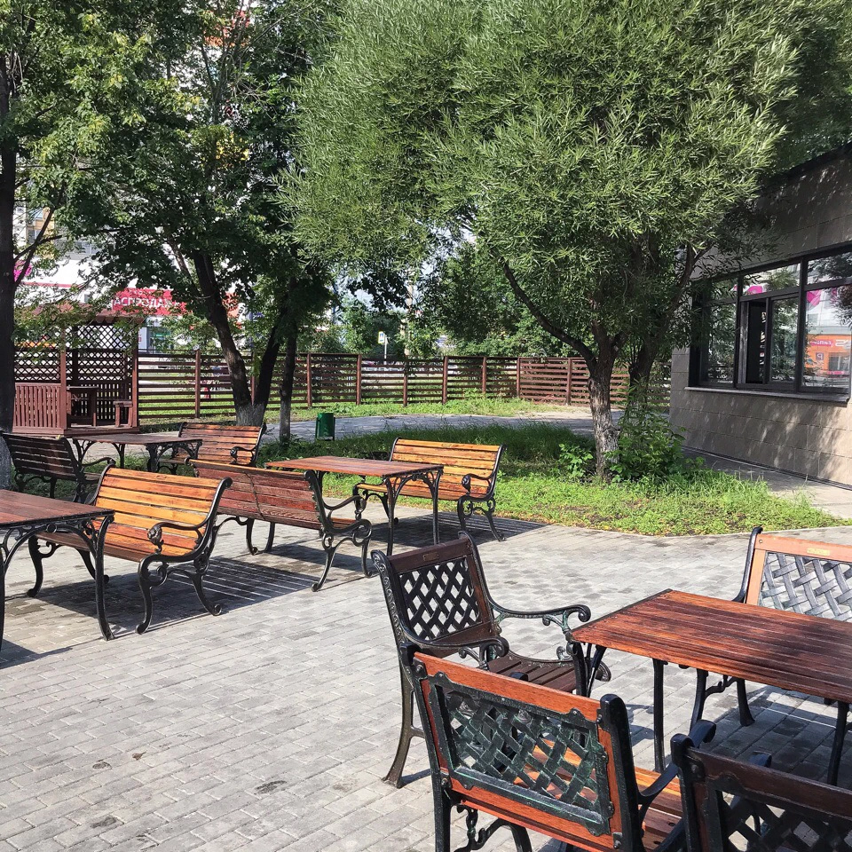 Единственным плюсом кафе была летняя терраса-палисад, где столики располагались прямо меж молодых яблонек, рябин и ухоженных цветочных клумб, тем создавая странное ощущение изолированности от суеты и шумов мегаполиса, находясь практически в эпицентре автомобильного трафика, на маленьком островке между трех оживленных трасс.