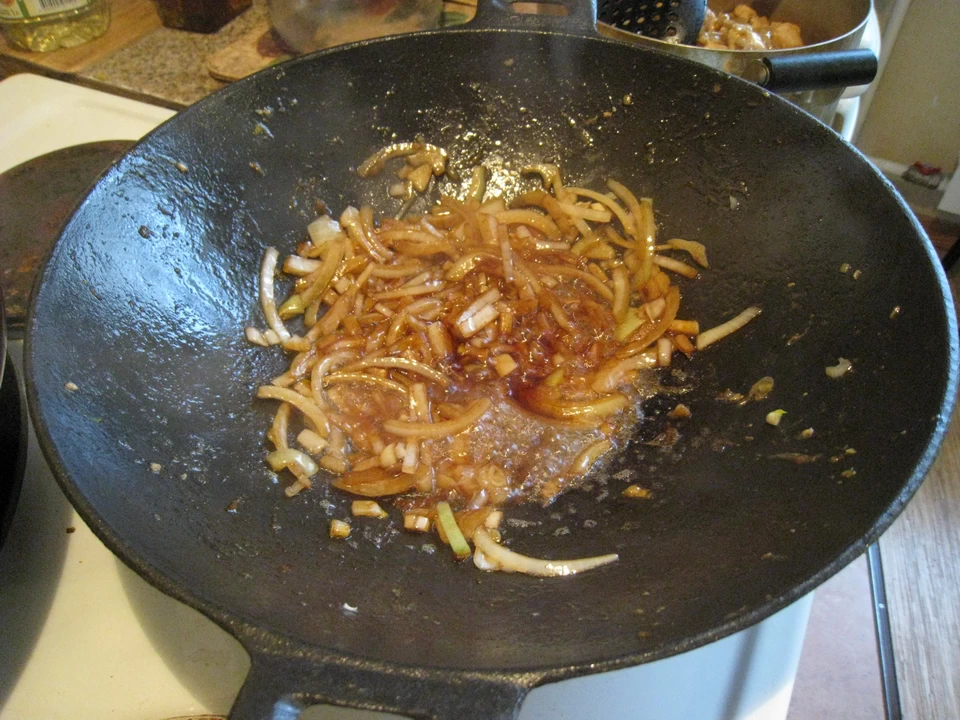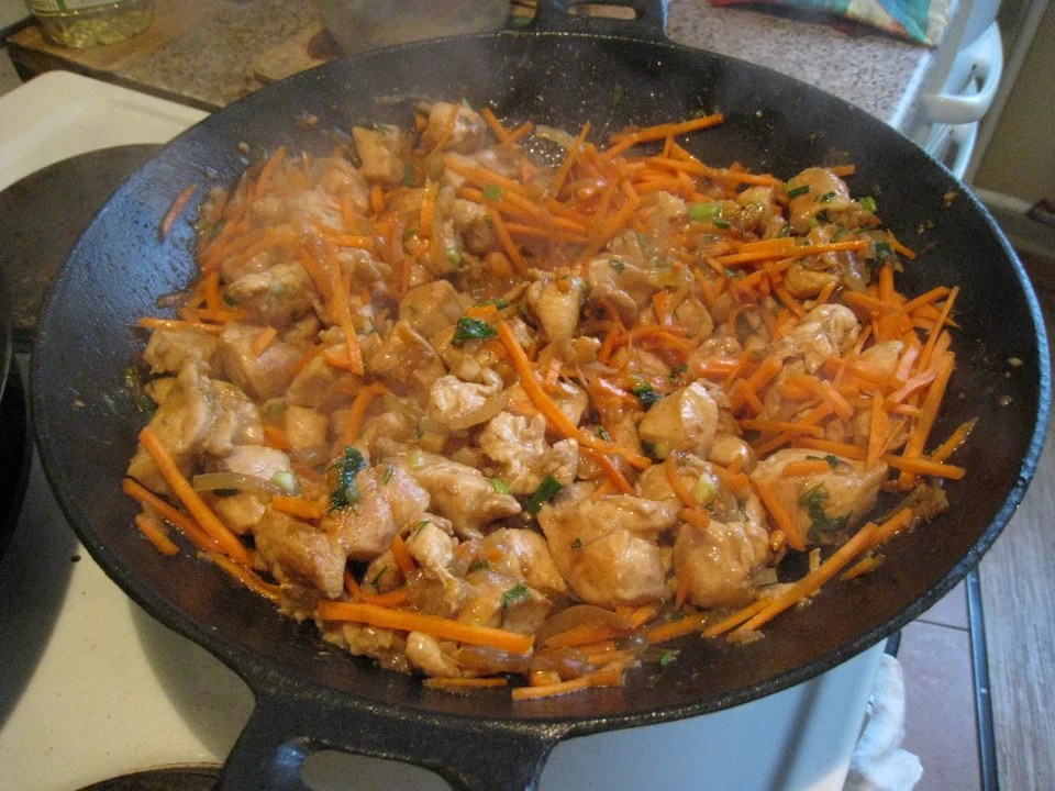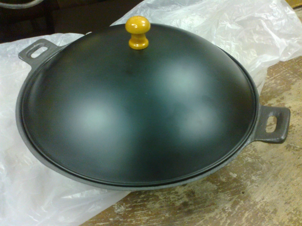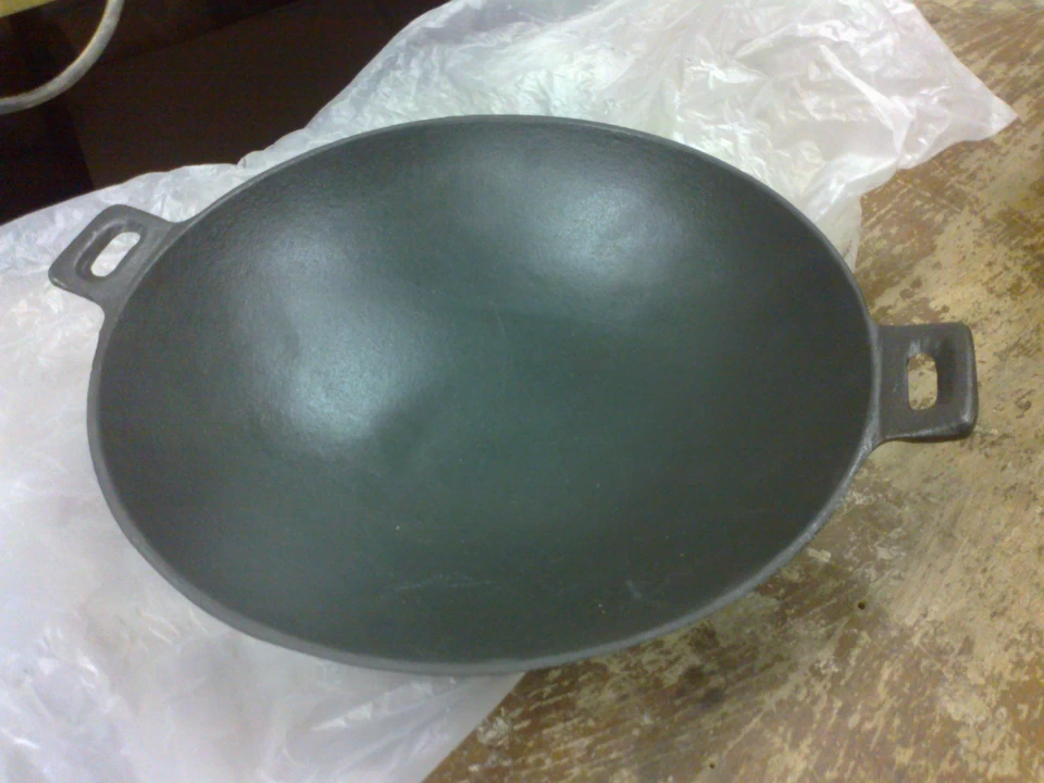 UPD через год. Посудина полностью себя оправдала. Да, маленькое дно дает неравномерный нагрев продуктов, отчего приходится добавлять жар на максимум и, как следствие, нужен глаз да глаз, а то пригорает дно. Но готовить в нем — одно удовольствие. С ним совсем забыл про свой сотейник, и практически все жарено-тушенные дела делаю в воке. Объем 2,5 л минимально достаточен, для нормальной порции на небольшую компанию или на семью на пару дней еды. Сперва, после 6-литровых объемов казана не мог приноровиться к количеству исходных продуктов, но это дело наживное. Покрытие пока на месте, но даже если и начнет сходить, под ним не дешевый тонкий китайский алюминий, а полноценный чугун. Так что, и тут все в порядке…