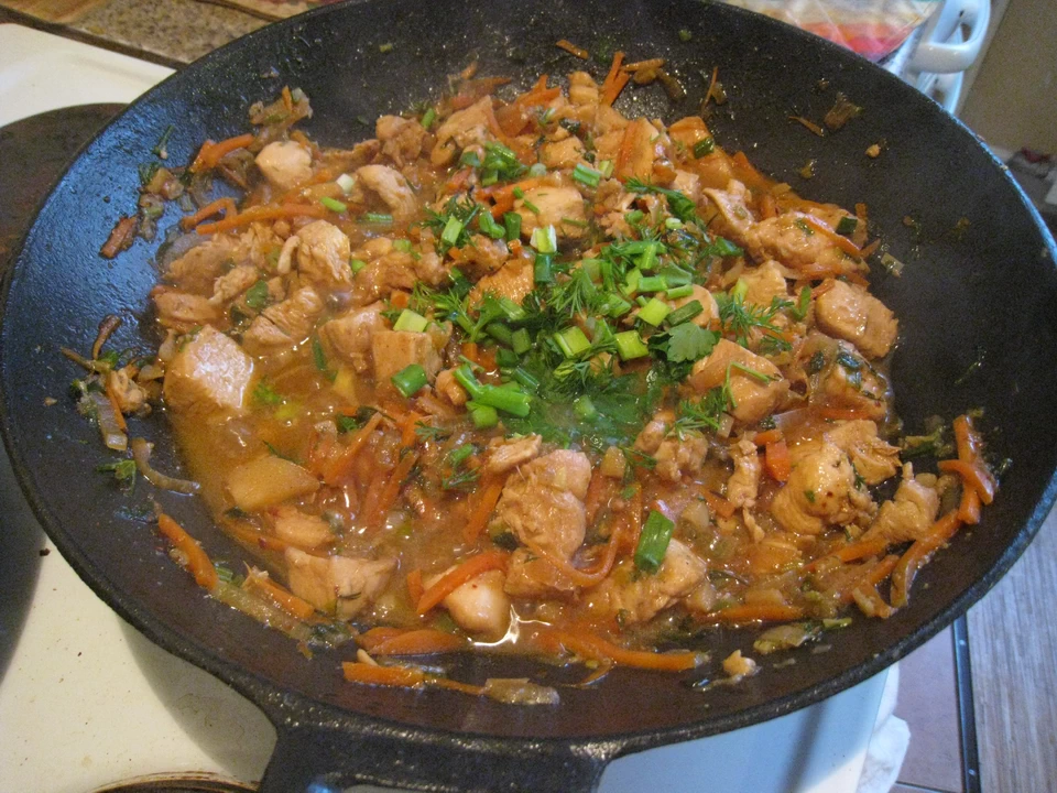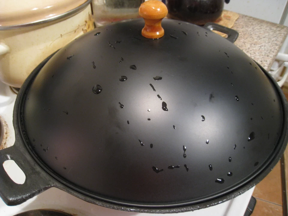 Имея в арсенале ещё и таджин (также на 2,5 л), подумал, что блюда с подобным эффектом паровой бани также могут быть приготовлены и в этом воке, поскольку крышка у него имеет довольно выпуклую куполообразную форму.