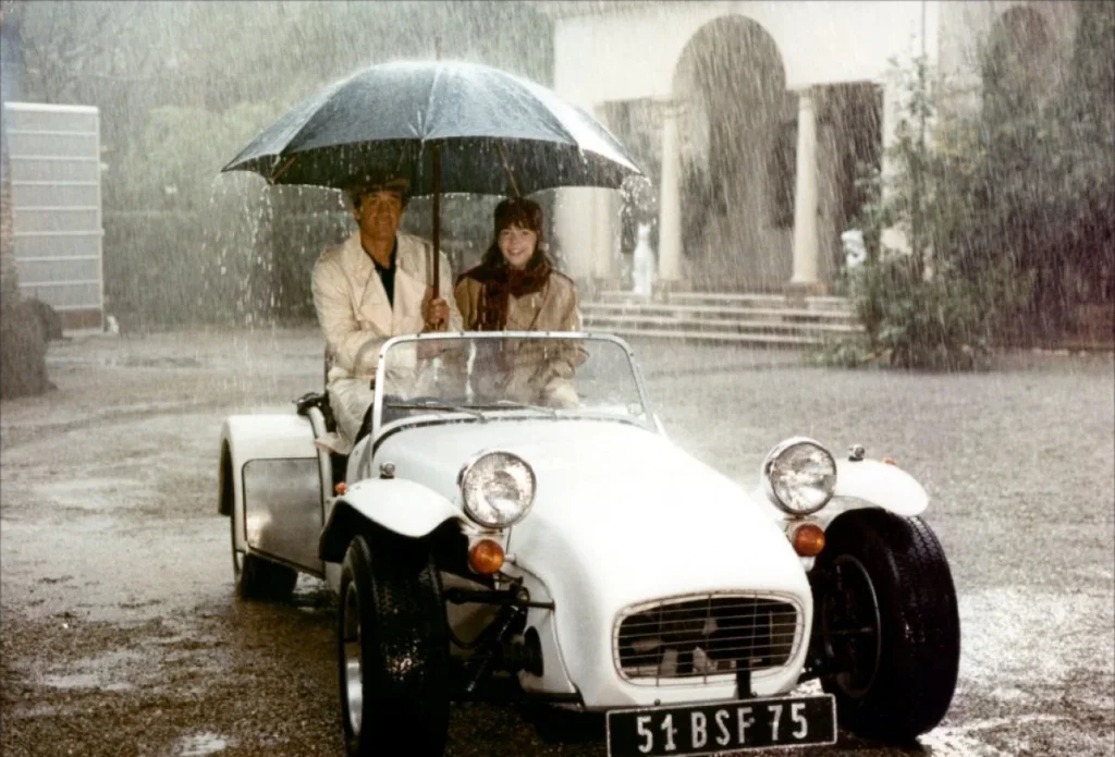 Кстати, белый кабриолет — не просто модный ландо для европейских мажориков с побережья, а культовый двухместный спортивный суперкар Caterham 7 от создателя легендарной компании Lotus. Модель, долгое время державшая рекорд по времени разгона до 100 км/ч.