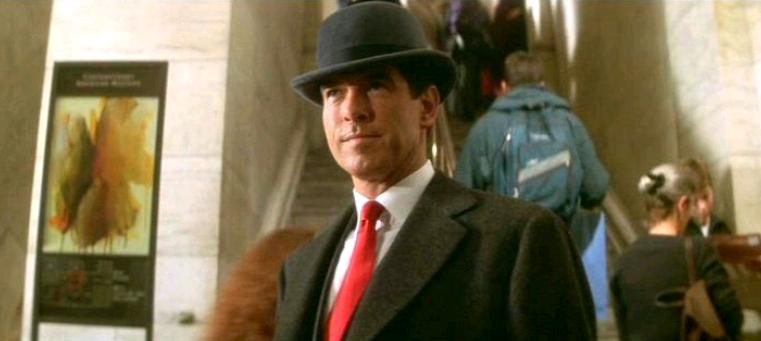 Да, но мы ведь хотели сравнить фильм с предшественником, а не с серией про агента 007? Хотя довольно трудно отделаться от сквозящих вокруг отсылок к самому известному британскому шпиону. Это и сам титульный на тот момент «Бонд» Пирс Броснан. Это и наличествующий сполна фирменный стиль Джеймса Бонда – современного гренадёра, супермена, авантюриста, игрока, бретёра, записного плейбоя и кутилы, непременно одетого с иголочки и играючи управляющегося со всеми видами техники.