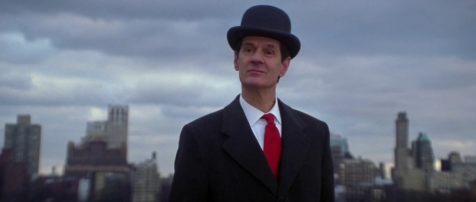 Но изящество фильма 1999-го года даже не в этих отсылках, а в ажурной канве выверенных до слова диалогов, взглядах, тонких намёках, скрытых двойных смыслах. Взять те же кульбиты с безликими буржуа в котелках в стенах музея Метрополитен, валящимися, словно с неба, как на одной из картин-загадок Рене Магритта.