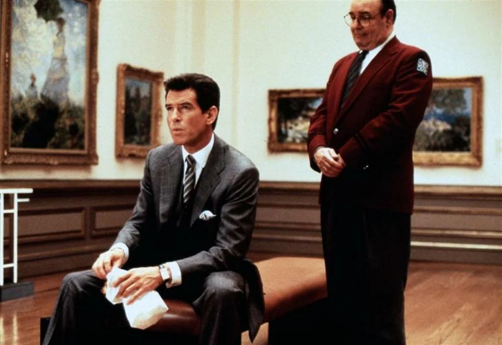 И если противостояние двух женских начал присутствует в фильме лишь краем, главная интрига, ключевая пружина, движущая действие, кроется в самих главных персонажах-антагонистах: героях Броснана и Руссо. Тут полный диалектический расклад единства и борьбы противоположностей: мужчина – женщина, похититель – ловец, закон – преступление, американская мечта – пренебрежение буржуазными ценностями, Европа – Америка, долг – чувства, любовь – предательство, деньги – деньги-штрих… можно долго перечислять.
