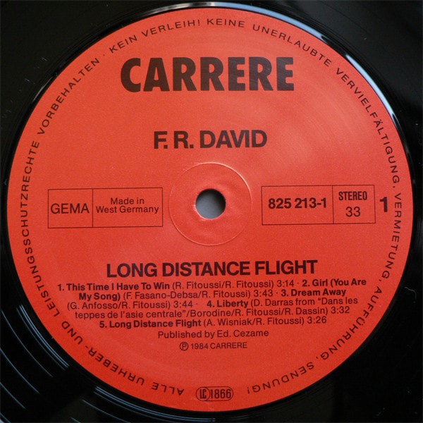 Слушал я нашего, понимаешь, с вами любимчика танцплощадок 80-х Эф. Эр. Дэвида еще вот в те самые времена. На кассете. Естественно, никакой инфы о сабже и песнях отродясь было тогда не достать, не говоря об полноценных обложках альбомов. Друг подростка-меломана журнал Ровесник про Дэвида тоже тогда не разразился. И вся инфа, в лучшем случае, была на бобинах, где хорошо бы рукой работника студии звукозаписи были написаны хотя бы названия треков. Но обычно лишь имя исполнителя, год и название альбома. Так и у меня: на одной стороне кассеты было записано Words ’84, на другой Long distance flight ’87. Всё, конец информации!