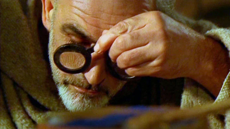 Первый раз я смотрел фильм ещё в конце 80-х, начале 90-х. Многие детали стёрлись кроме общего восхищения от лихо закрученного детективного сюжета в жёстких реалиях мрачного Средневековья. Ну и главных актёров в лице Коннери и совсем ещё юного Кристиана Слейтера. Что затем изрядно довлело над собственным видением персонажей во время прочтения книги.